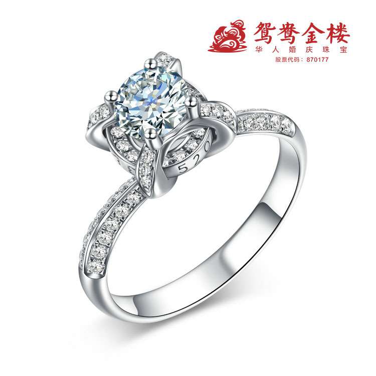 经典四爪镶,侧面为鸳鸯之心。钻石下方为可转动的圆圈,为钻戒增添了